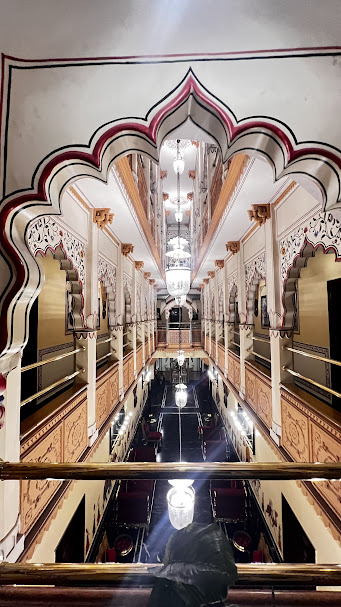 המלון משלב אלמנטים רג׳פוטיים (ארמונות רג׳סטניים) עם מוטיבים מוגוליים: קשתות, עיטורים, דוגמאות פיליגרן וקישוטים עשירים. ציורי קיר מיניאטוריים רג׳סטניים, תקרות מקושטות, מיטות אפיריון, וילונות וטקסטיל צבעוניים. הכל במטרה  ליצור תחושה של ארמון חי. לא מוזיאון אלא מקום שאפשר לגור בו בנוחות מודרנית.